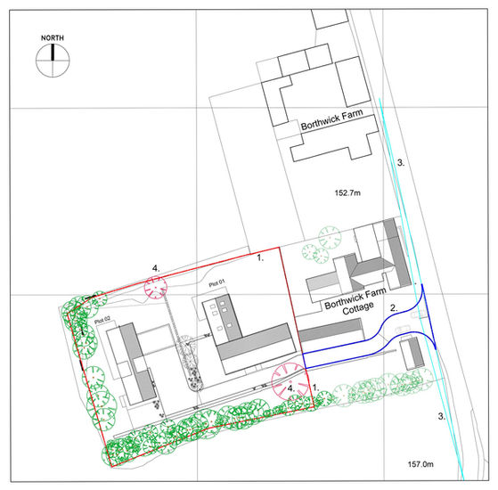 Accessed discreetly from the east behind an existing stable block, the site is arranged along an east–west axis, following the natural gradient of the Glen. The two new houses are positioned in relation to a newly formed retaining wall, one parallel, the other perpendicular creating a sensitive response to the site's topography.